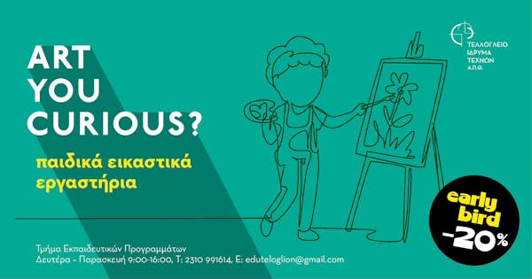 Άρχισαν οι εγγραφές με early bird -20% μέχρι 31 Ιουλίου, για τον νέο κύκλο των εικαστικών εργαστηρίων για παιδιά και εφήβους στο Τελλόγλειο Ίδρυμα Τεχνών Α.Π.Θ, που ξεκινά στις 4 & 5 Οκτωβρίου!