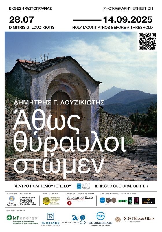 Εγκαινιάζεται τη Δευτέρα 28 Ιουλίου 2025 στο Κέντρο Πολιτισμού Ιερισσού η έκθεση φωτογραφίας του Δημήτρη Γ. Λουζικιώτη με τίτλο «Άθως Θύραυλοι Στώμεν» ⁎ .