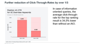 AI Mode. Πριν έξι μήνες, η OpenAI είχε αναλογία 250:1, σήμερα είναι 1.500:1. Μόλις την προηγούμενη εβδομάδα, η Google εισήγαγε νέα υπηρεσία που επηρεάζει τη λειτουργία “Discover”, όπου εμφανίζει εξατομικευμένο περιεχόμενο χωρίς αναζήτηση από τον χρήστη, συνοψίζοντας άρθρα ειδήσεων σε κουκκίδες αντί να κατευθύνει τους χρήστες προς τους δημιουργούς περιεχομένου.