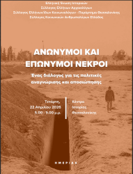 Σύλλογο Ελλήνων/ίδων Κοινωνιολόγων – Παράρτημα Θεσσαλονίκης και τον Σύλλογο Κοινωνικών Ανθρωπολόγων Ελλάδας ημερίδα με θέμα: «Ανώνυμοι και επώνυμοι νεκροί: Ένας διάλογος για τις πολιτικές αναγνώρισης και