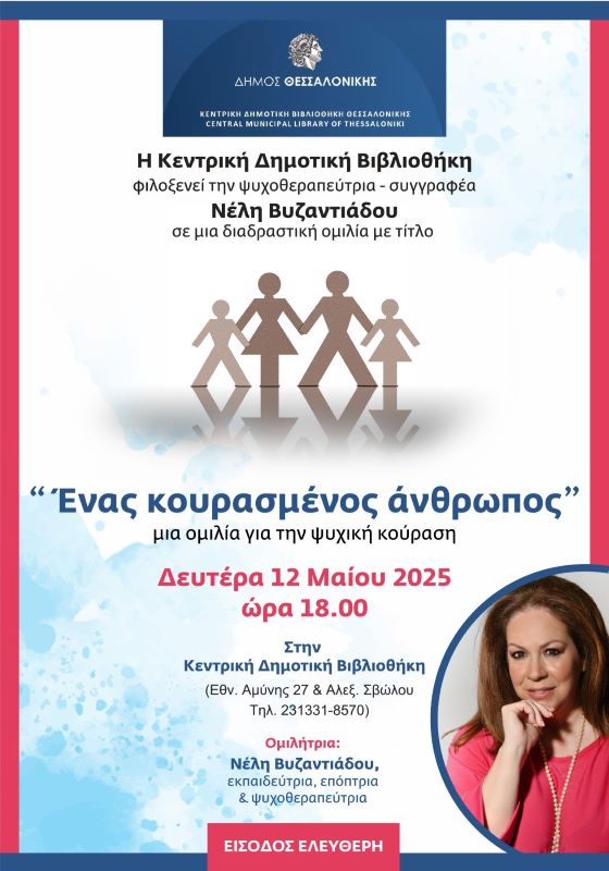 Τη Δευτέρα 12 Μαΐου στις 18:00, ομιλία με τίτλο «Ένας κουρασμένος άνθρωπος» από την συγγραφέα Νέλη Βυζαντιάδου