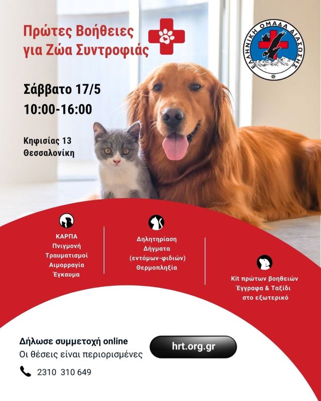 Για αυτό πραγματοποιούμε ένα εξειδικευμένο σεμινάριο Πρώτων Βοηθειών για Ζώα Συντροφιάς – για σένα που θέλεις να γνωρίζεις τι πρέπει να κάνεις αν κάτι απρόσμενο συμβεί στον τετράποδο φίλο σου!