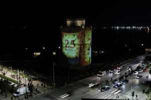 Με άσπρο και γαλάζιο και με μηνύματα της Ελληνικής Επανάστασης του 1821 φωταγωγήθηκε ανήμερα 25ης Μαρτίου, ο Λευκός Πύργος, στη διάρκεια εκδήλωσης με την παρουσία του δημάρχου Θεσσαλονίκης Κωνσταντίνου Ζέρβα.