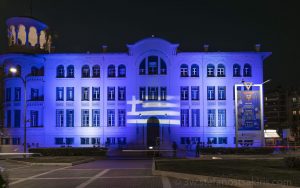 Στη Θεσσαλονίκη φωτίστηκε με την ελληνική σημαία και το κτίριο της ΧΑΝΘ.