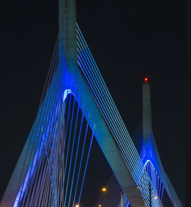 Τα φωταγωγημένα κτίρια σε γαλανόλευκα χρώματα