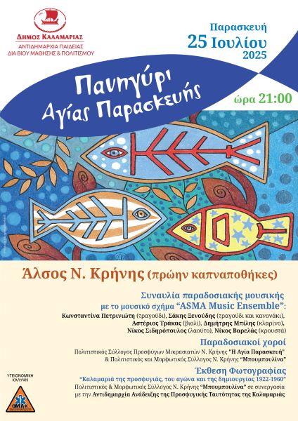 Το Πανηγύρι Αγίας Παρασκευής έρχεται στο Άλσος Νέας Κρήνης! Ο Δήμος Καλαμαριάς, τιμώντας την τοπική παράδοση και την προσφυγική του ρίζα, διοργανώνει και φέτος με ξεχωριστή φροντίδα το Πανηγύρι της Αγίας Παρασκευής,