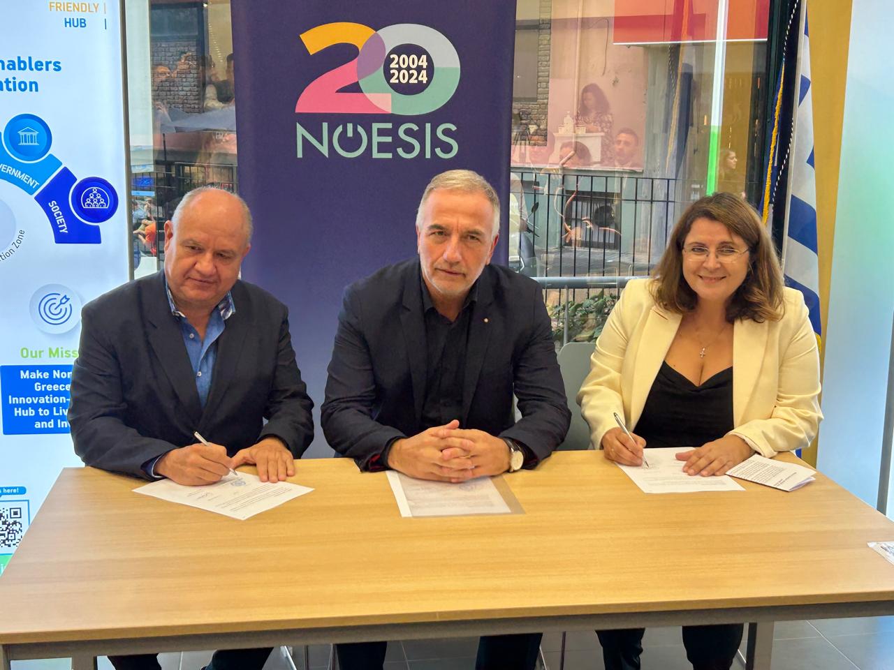 Το Μνημόνιο Συνεργασίας, -πρωτοβουλία του υφυπουργού Ανάπτυξης κ. Σταύρου Καλαφάτη, υπέγραψαν εκ μέρους του ΝΟΗΣΙΣ η πρόεδρός του, Δρ. Στέλλα Μπεζεργιάννη και εκ μέρους του ΕΚΕΤΑ ο πρόεδρος του Διοικητικού Συμβουλίου Δρ. Ευάγγελος Μπεκιάρης παρουσία και του υφυπουργού, στην Αλεξάνδρεια Ζώνη Καινοτομίας.