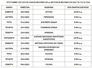 Γ. Το πρόγραμμα εξετάσεων ειδικών μαθημάτων και μουσικών μαθημάτων 2022 για ΓΕΛ & ΕΠΑΛ: