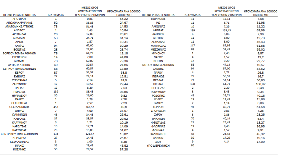 Διασωληνωμένοι νοσηλεύονται 347 ασθενείς- Καταγράφηκαν 43 θάνατοι- Η γεωγραφική κατανομή: