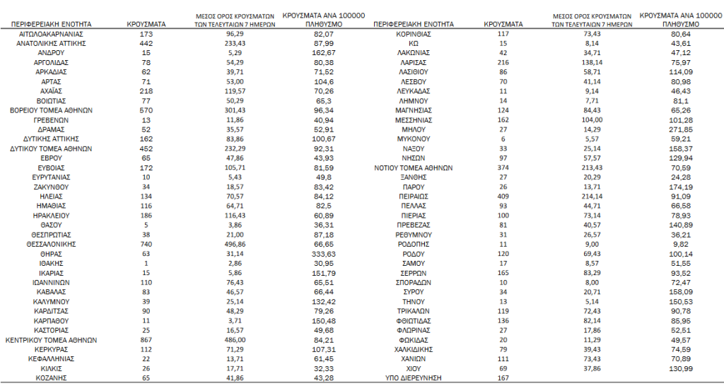 Τα νέα εργαστηριακά επιβεβαιωμένα κρούσματα της νόσου (άτομα) που καταγράφηκαν τις τελευταίες 24 ώρες ήταν 8.015. Ο συνολικός αριθμός των ατόμων που νόσησαν ανέρχεται σε 3.343.565 (ημερήσια μεταβολή +0.2%), εκ των οποίων 48.9% άνδρες.