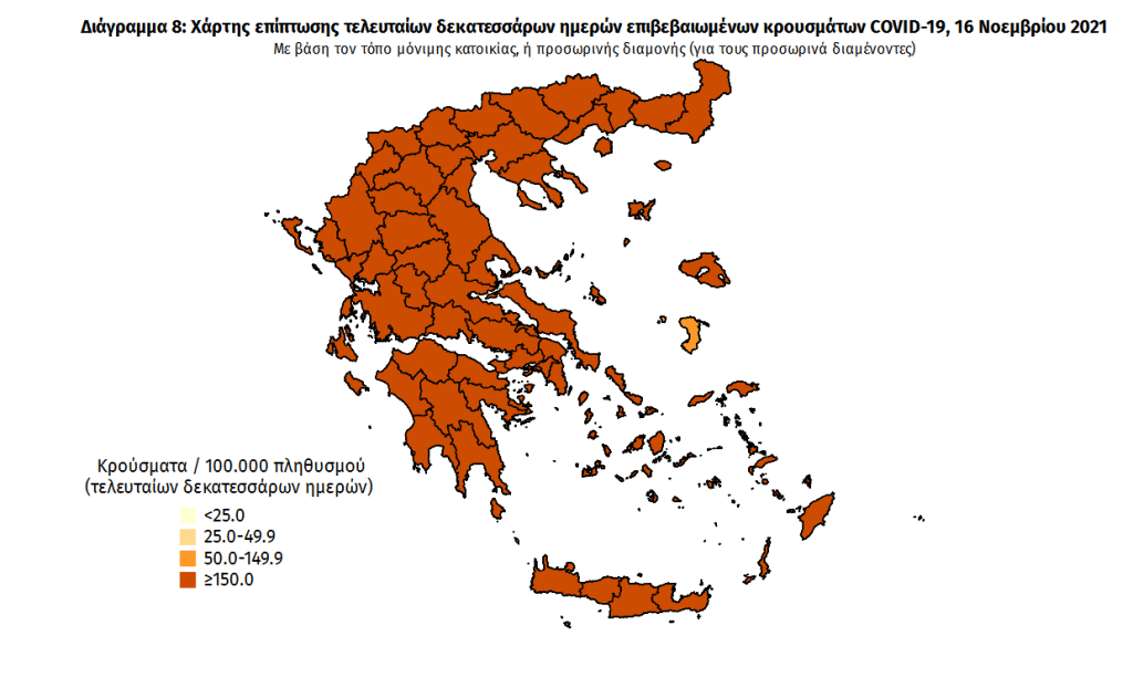 ΕΟΔΥ: Ξανά πάνω από 8.000 νέα κρούσματα SARS CoV2 ανακοινώθηκαν σήμερα, 16 Νοεμβρίου 2021