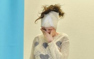 Η τελευταία φωτογραφία, είναι τραβηγμένη μέσα σε κάποιο νοσοκομείο, με τη νεαρή κοπέλα να έχει επίδεσμο στο κεφάλι της και να κρατάει με τα δάχτυλά της το πρόσωπο της, γράφοντας: