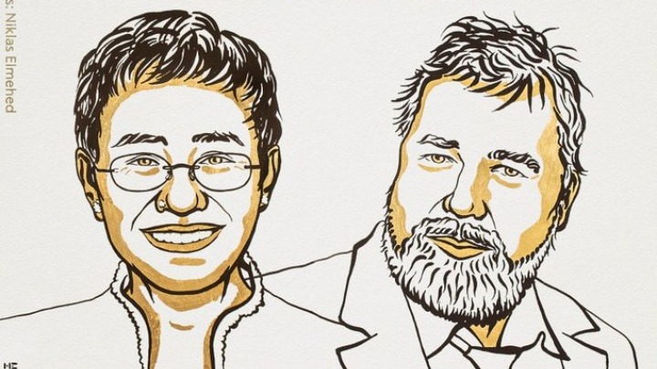 Το δικαίωμα της ελευθερίας του λόγου, σε μια εποχή που το δικαίωμα αυτό απειλείται σε όλο τον κόσμο, τιμήθηκε σήμερα με τη βράβευση δύο δημοσιογράφων, των οποίων η δουλειά έχει εξοργίσει τις αρχές στη Ρωσία και τις Φιλιππίνες, όπως ανακοίνωσε η επιτροπή που απονέμει το Νομπέλ Ειρήνης.