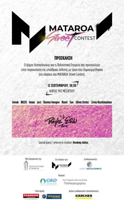 Για δεύτερη συνεχή χρονιά ο Δήμος Θεσσαλονίκης υποστηρίζει την πρωτοβουλία της Πολιτιστικής Εταιρείας για τη διοργάνωση του MATAROA Street Contest, μια δράση που μεταμορφώνει τον Κήπο της Μεσογείου σε υπαίθριο «μουσείο» street art. Πρόκειται για το επιστέγασμα μιας σειράς παρεμβάσεων που έχουν καθιερωθεί, έχουν ως στόχο την αισθητική και λειτουργική αναβάθμιση της νέας Παραλίας και αφορούν: