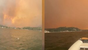Να σημειώσουμε πως την ώρα που ο ίδιος έπλεε στη θάλασσα προκειμένου να προσεγγίσει την ακτή και να μεταφέρει τυχόν πολίτες που ήθελαν να περάσουν στην απέναντι πλευρά, ένα ελικόπτερο είχε προσγειωθεί στη θάλασσα προκειμένου να ανεφοδιαστεί με νερό.